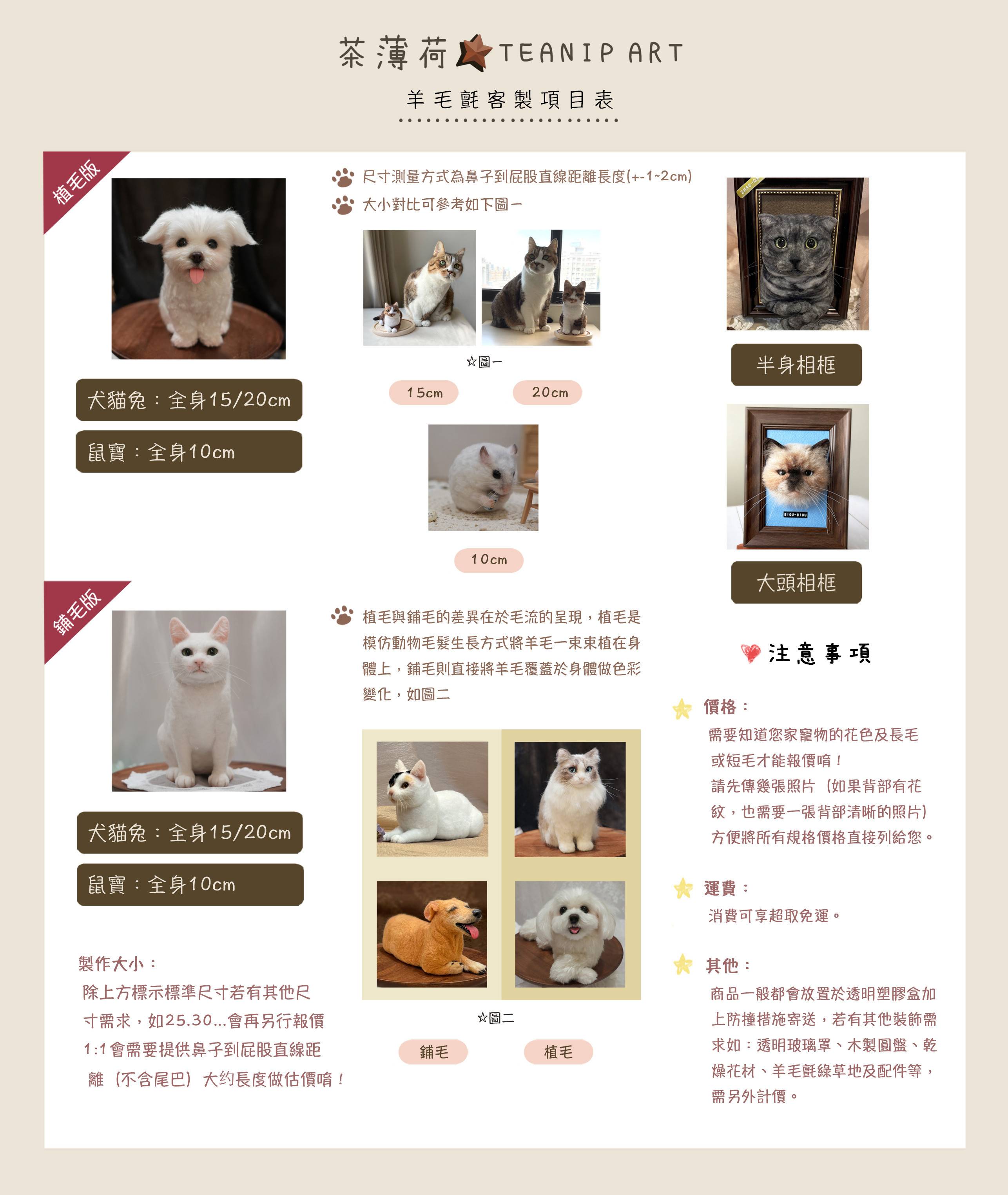 恕不接受訂製非寵物類型的羊毛氈作品訂製唷!