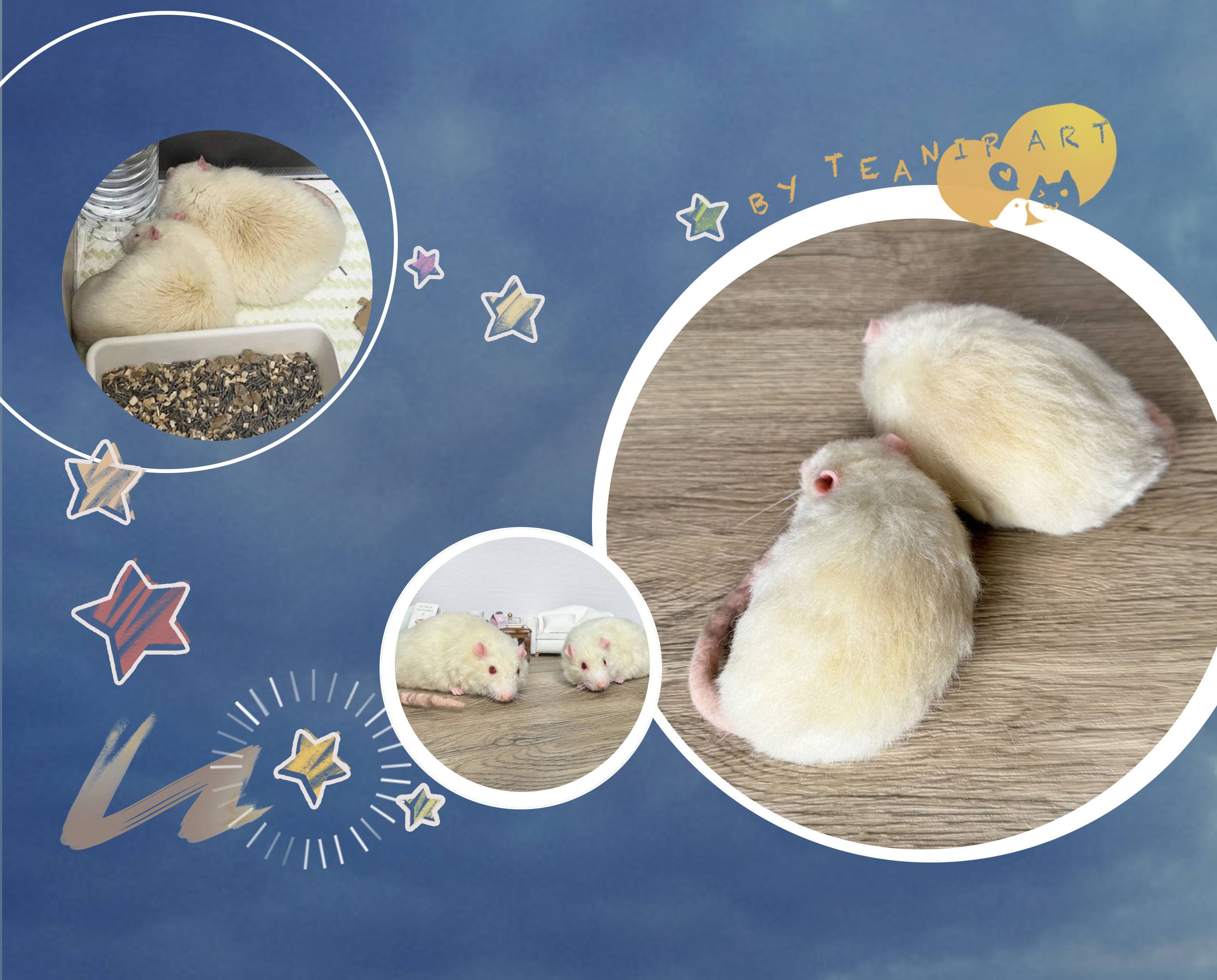 ◌ 鼠寶全身:倉鼠(鼻子到屁股大约長度)10cm;天竺鼠(鼻子到屁股大约長度)10cm、15cm。
