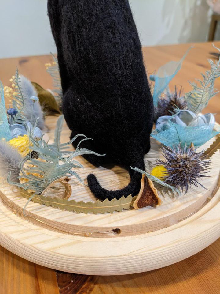 ⌑ 表面如因摩擦而有雜毛或毛球產生,直接以小剪刀修剪掉即可,不會影響羊毛氈織品外觀,但還請避免摩擦拉扯及小心被主子抓到。